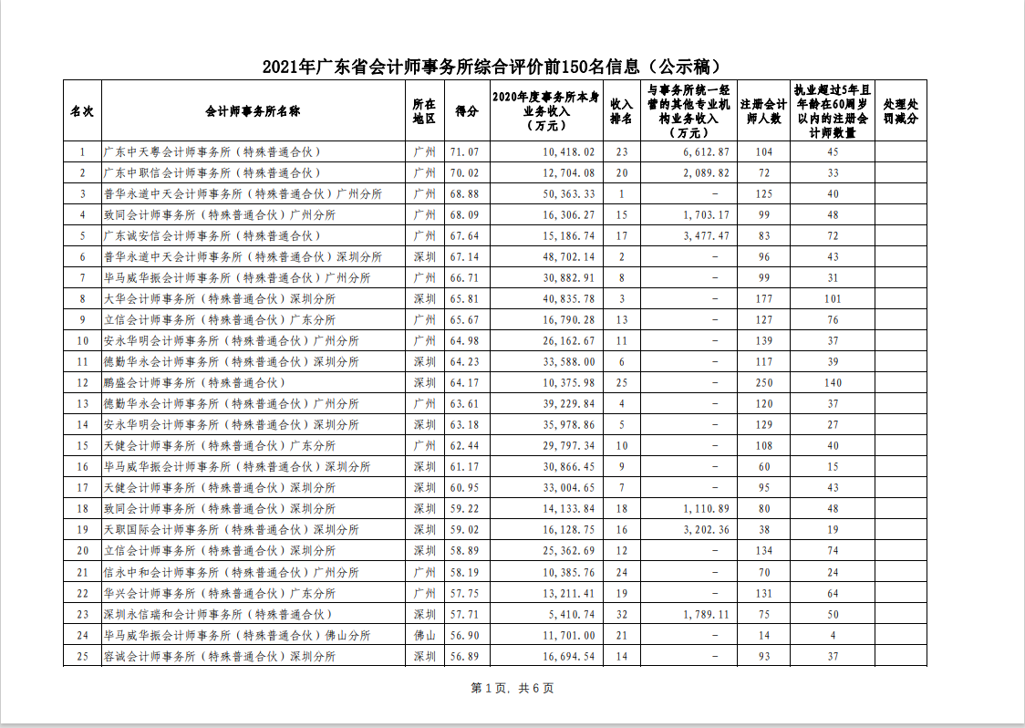 1.2021年广东省会计师事务所综合评价前150名信息(公示稿)